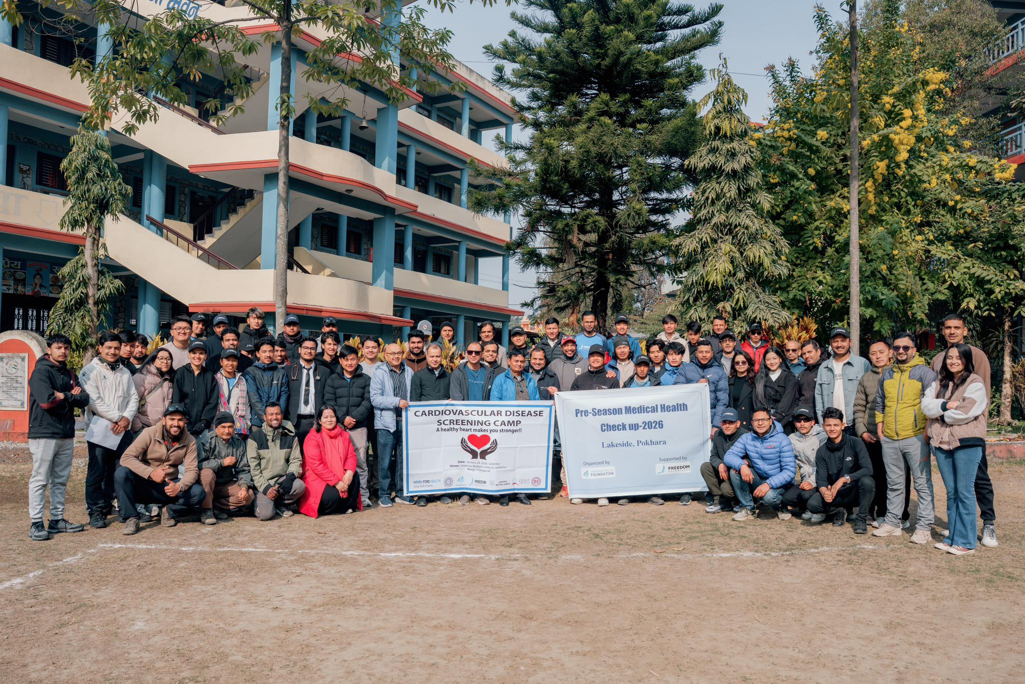 GTA Foundation, in collaboration with Henry Ford Health, Freedom Social Foundation, Freedom Adventures, Janapriya Multiple Campus, Quest Pharmaceuticals, and Sahid Gangalal National Heart Center, successfully organized a Cardiovascular Disease Screening Camp on Saturday, January 24, 2026, at Janapriya Multiple Campus, Janapriya Marg, Pokhara, under the theme: “A healthy heart makes you stronger.”